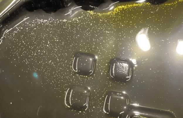 - Dầu chuyển sang màu đen sẫm hoặc có mùi khét đặc trưng của việc bị “cháy” do nhiệt độ cục bộ quá cao tại các vết mòn.