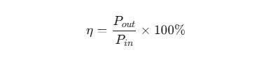 Hiệu suất của bộ nguồn được tính bằng tỷ lệ công suất đầu ra (Output Power) chia cho công suất đầu vào (Input Power).