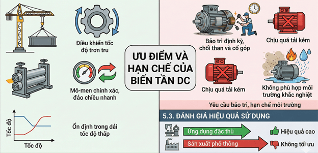 - Hệ thống DC vẫn được chọn khi AC khó đáp ứng về mô-men, tốc độ phản hồi hoặc điều khiển chính xác tại tải cực thấp.