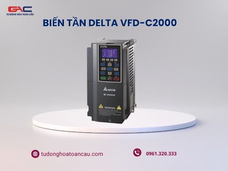 Biến tần Delta VFD-C2000 là dòng biến tần cao cấp thuộc thương hiệu Delta có xuất xứ từ Đài Loan. Sản phẩm được thiết kế chuyên dụng cho các ứng dụng tải nặng như băng tải, máy nén, máy đùn… với khả năng chịu tải tốt và vận hành ổn định. Nhờ tích hợp nhiều tính năng điều khiển hiện đại, C2000 mang lại hiệu suất cao và độ tin cậy trong môi trường công nghiệp.