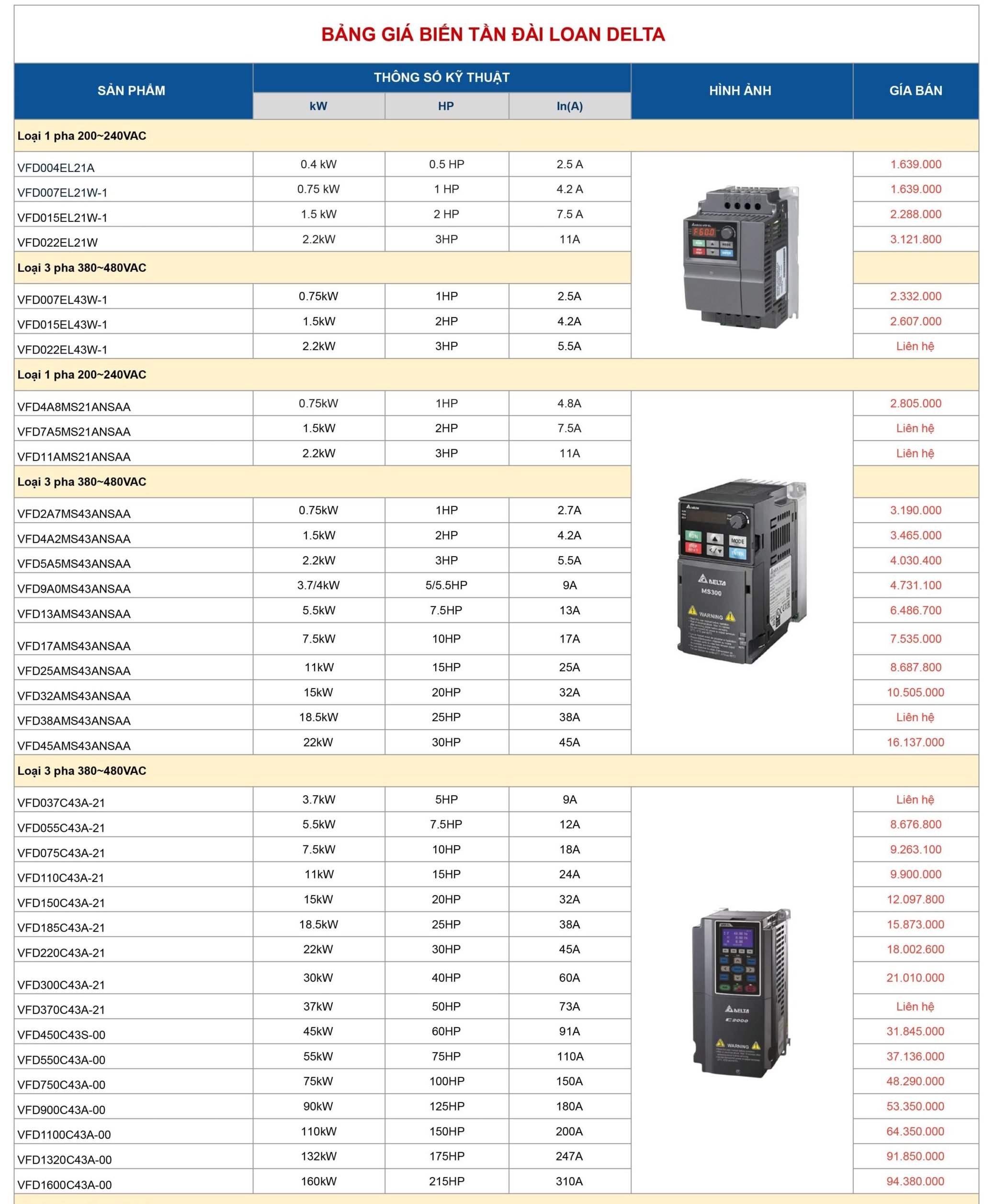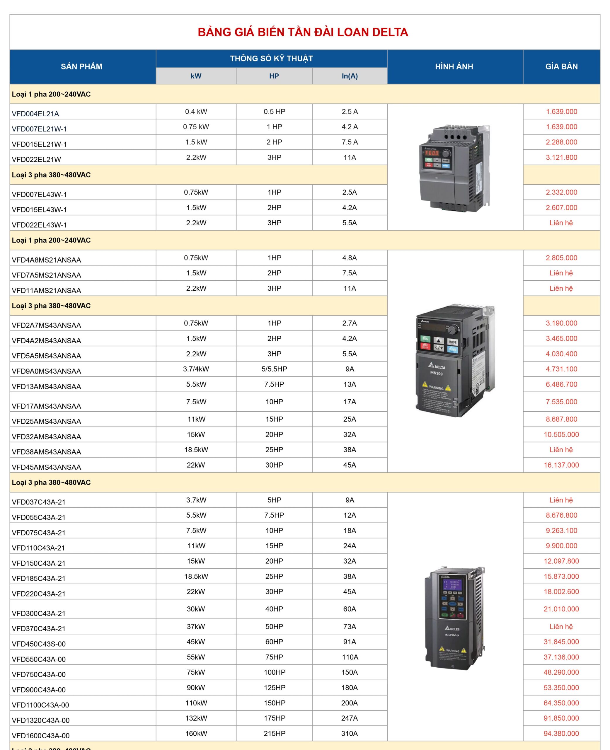 Xem đầy đủ bảng giá biến tần Delta: TẠI ĐÂY