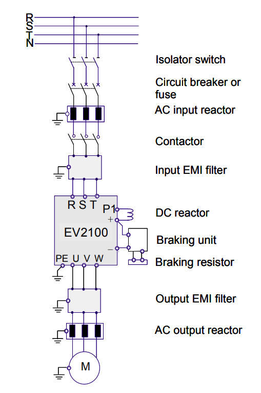 - R, S, T (hoặc L1, L2, L3) đối với nguồn 3 pha.