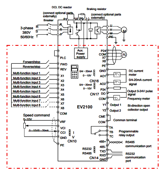 - Chỉnh tốc độ: Biến trở đấu vào VRF (+10V), VCI (tín hiệu), GND.