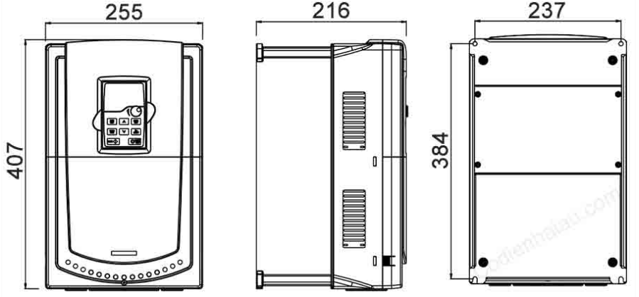 | Tích hợp sẵn | Keypad Bộ điều khiển thắng (Breaking Unit) Cổng truyền thông RS-485 Bộ lọc EMC |