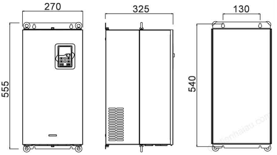 | Tích hợp sẵn | Keypad Bộ điều khiển thắng (Breaking Unit) Cổng truyền thông RS-485 Bộ lọc EMC |