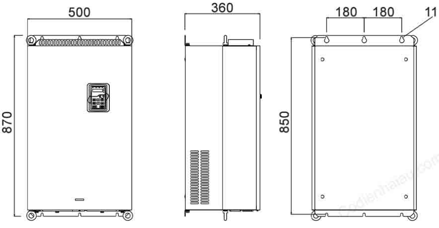 | Tích hợp sẵn | Keypad Bộ điều khiển thắng (Breaking Unit) Cổng truyền thông RS-485 Bộ lọc EMC |