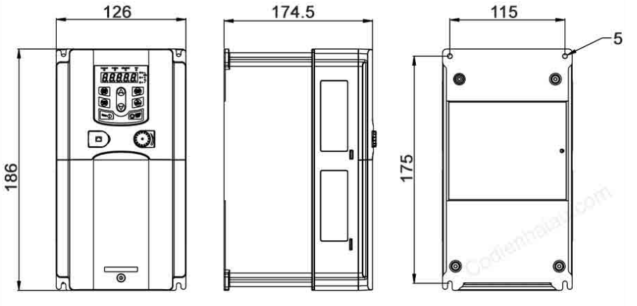 | Tích hợp sẵn | Keypad Bộ điều khiển thắng (Breaking Unit) Cổng truyền thông RS-485 Bộ lọc EMC |