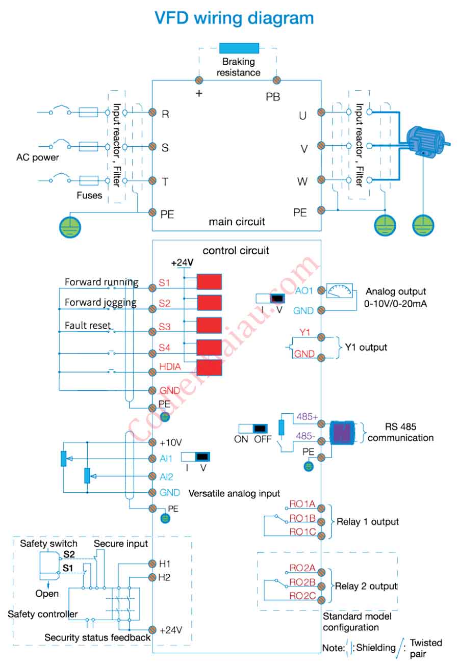 Sơ đồ đấu đây biến tần INVT GD27