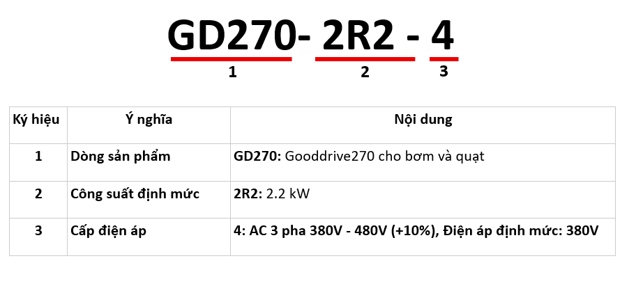 Thông số kỹ thuật chi tiết của biến tần GD270 series