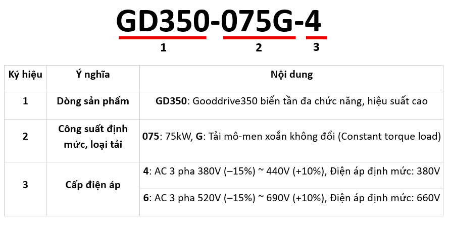 | Điện áp cung cấp | 3 pha 380V ~ 440V AC, 50/60Hz |