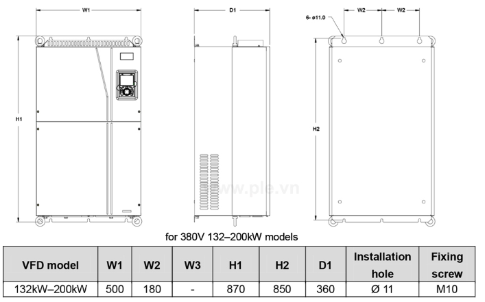 | Điện áp cung cấp | 3 pha 380V ~ 440V AC, 50/60Hz |