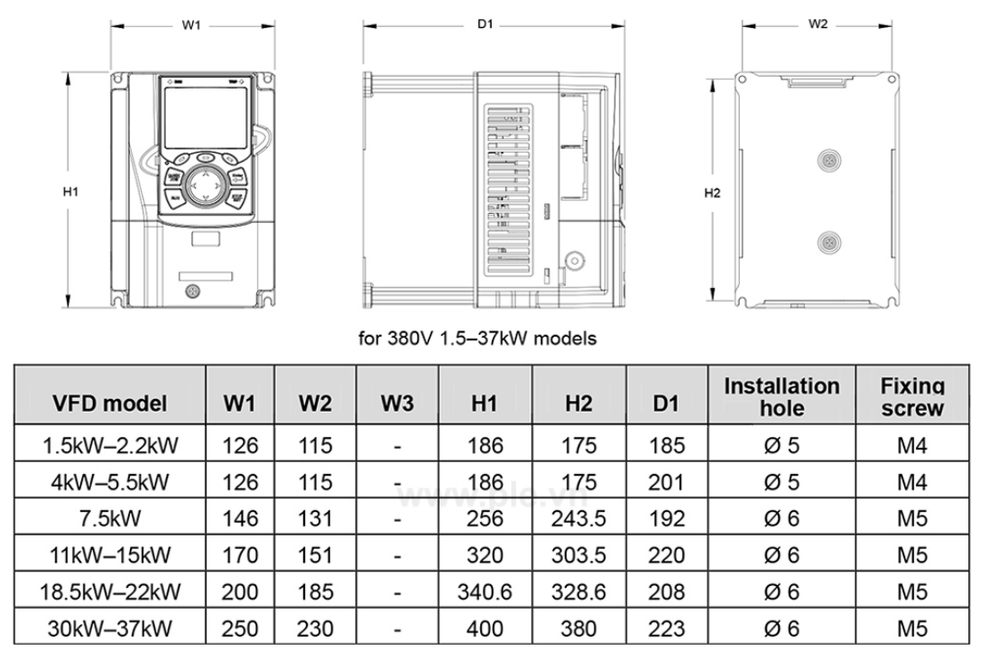 Kích thước biến tần