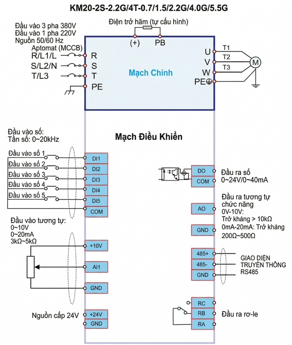Được định vị là dòng biến tần chuyên biệt cho tải nhẹ và ứng dụng phổ thông, KM20 sở hữu thiết kế tinh gọn nhưng vẫn được trang bị nền tảng vi xử lý thế hệ mới, mang lại tính linh hoạt và độ ổn định cao.