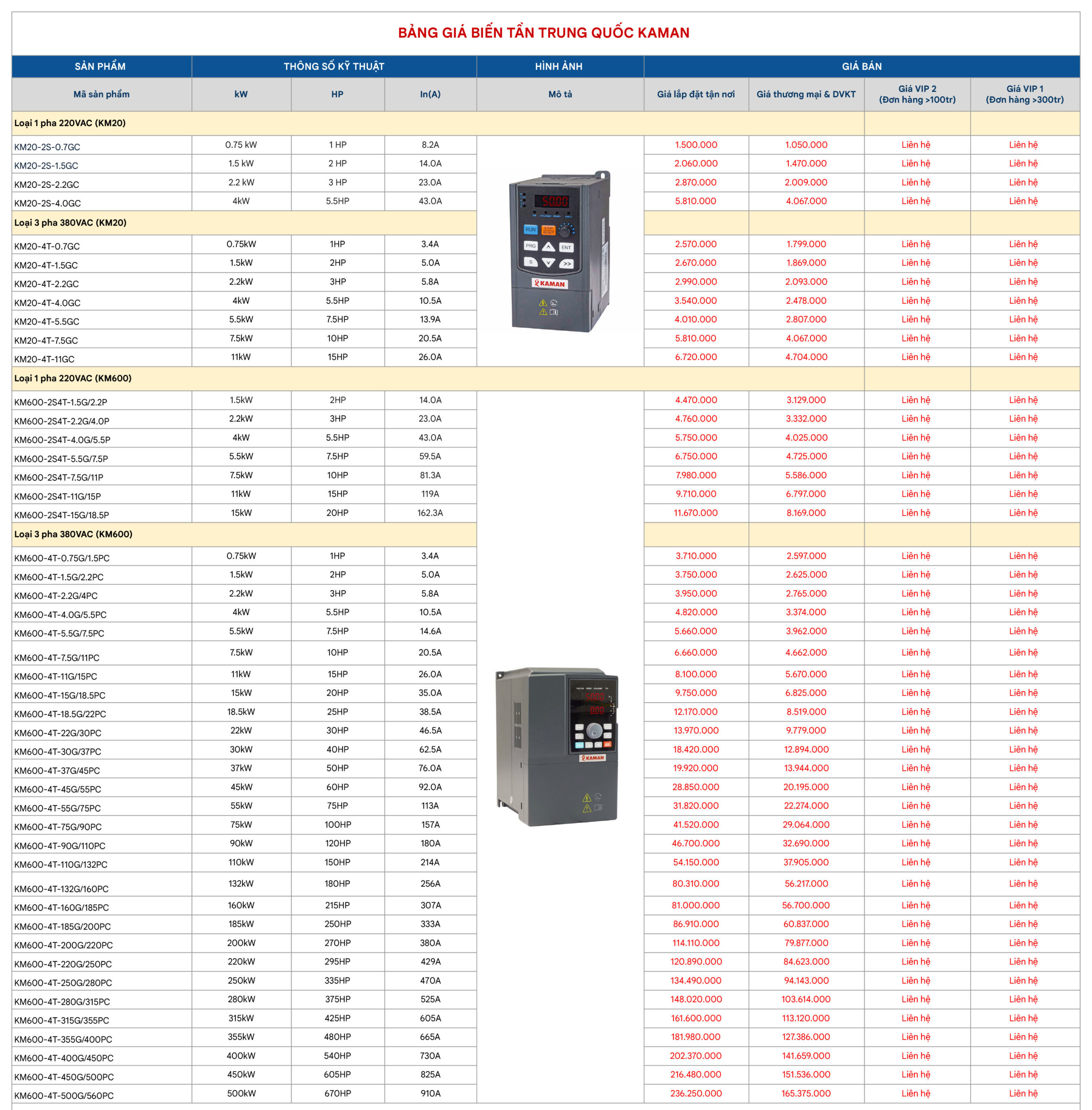 Xem đầy đủ bảng giá biến tần Kaman: Tại đây