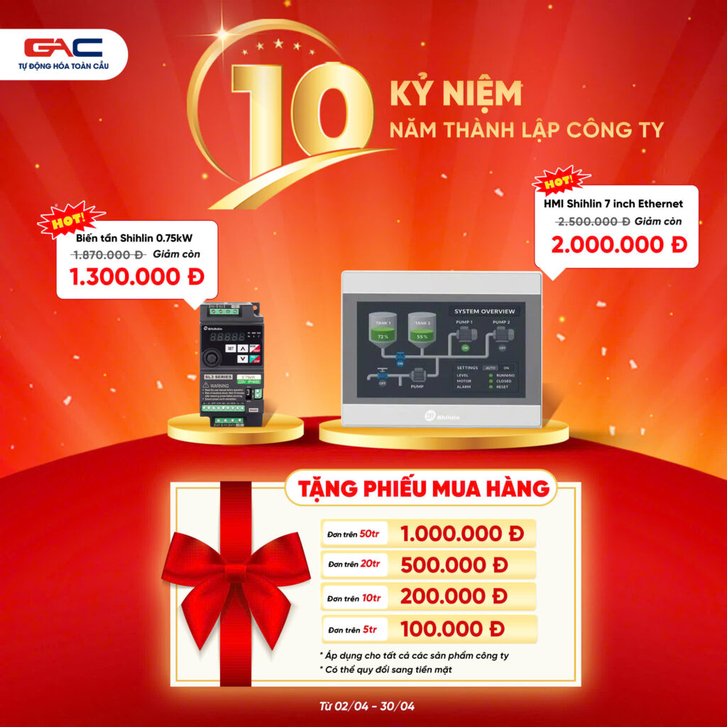 Đặc biệt nhân dịp kỷ niệm 10 năm thành lập, Tự Động Hóa Toàn Cầu triển khai chương trình ƯU ĐÃI ĐẶC BIỆT THÁNG 4, áp dụng cho toàn bộ các dòng sản phẩm biến tần Shihlin: