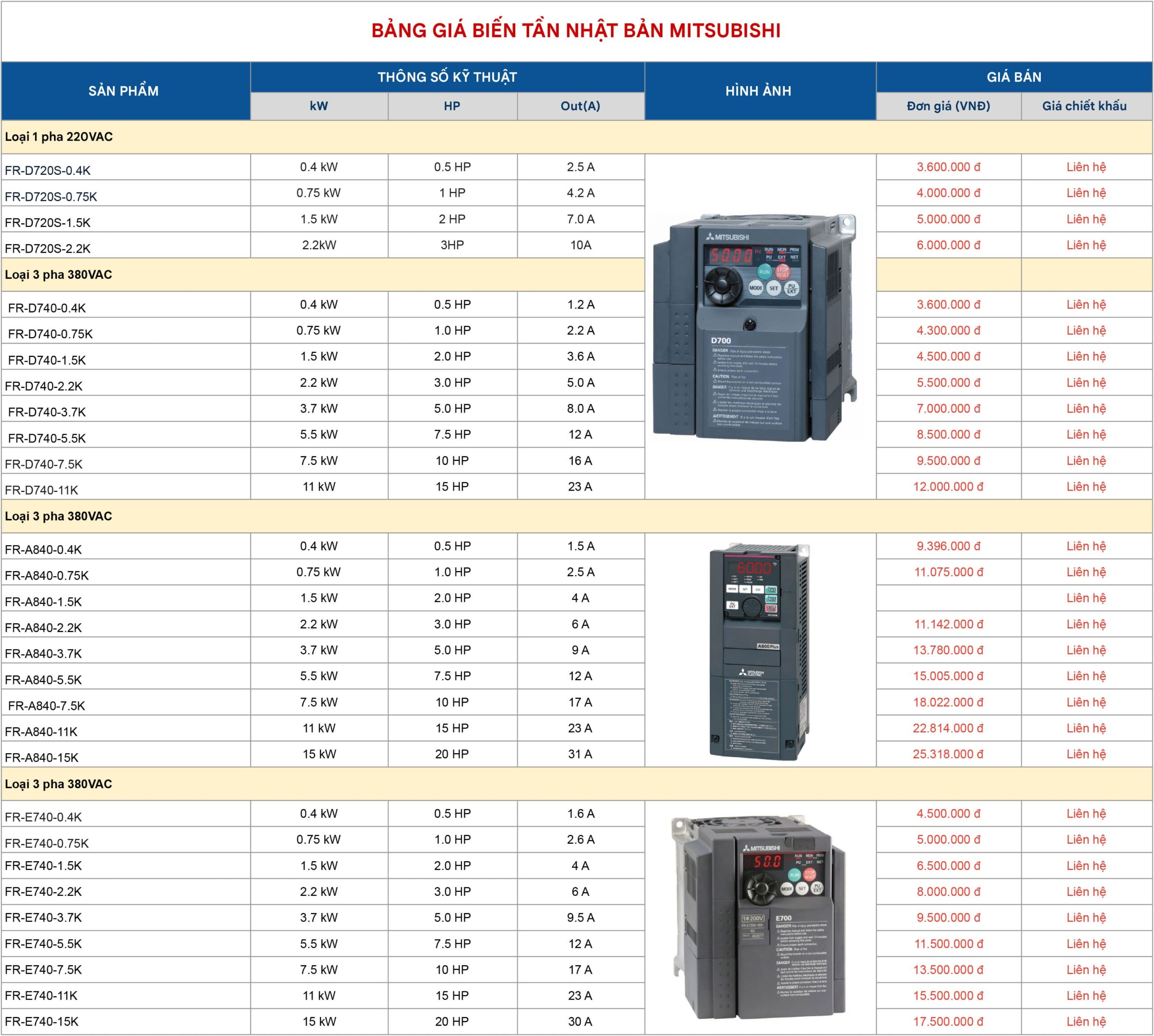 Biến tần Mitsubishi FR-F840-7.5K-1 7.5kW 3 Pha 380V