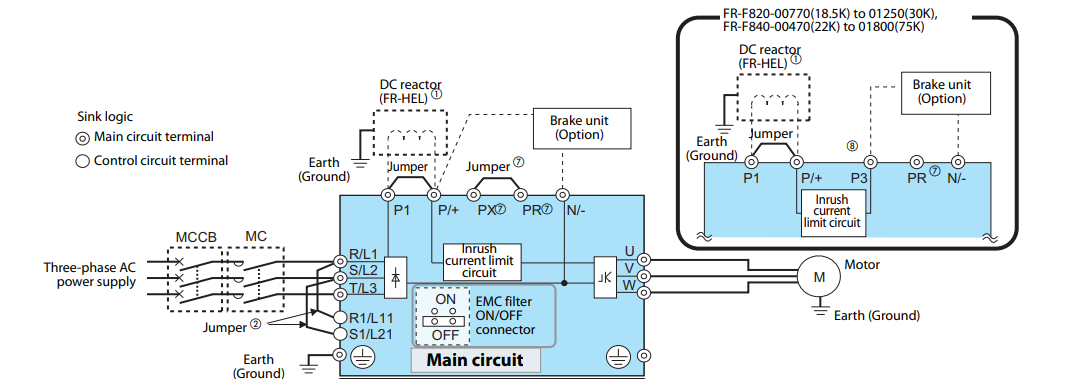 2. Sơ đồ đấu dây biến tần Mitsubishi F800 chuẩn kỹ thuật
