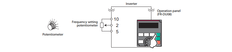 • Pr. 79 = 4 (Combined Mode 2): Kết hợp giữa tần số cài bên ngoài và lệnh chạy từ bàn phím.