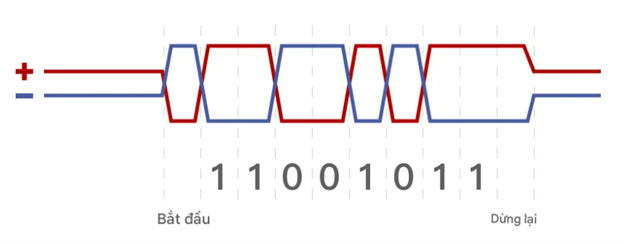 Cách làm này tạo ra lợi thế lớn trong môi trường công nghiệp. Khi nhiễu điện từ từ bên ngoài tác động lên đường truyền, nhiễu thường ảnh hưởng gần như đồng đều lên cả hai dây. Bộ thu sẽ so sánh điện áp chênh lệch giữa A và B, từ đó loại bỏ phần nhiễu chung và giữ lại tín hiệu thật.