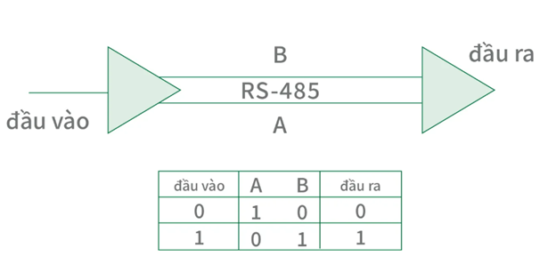 Điểm cốt lõi của truyền thông RS485 là phương thức truyền tín hiệu vi sai. Chuẩn này không lấy điện áp so với đất làm chuẩn chính, mà dựa trên độ chênh lệch điện áp giữa hai dây tín hiệu A và B để xác định trạng thái logic.