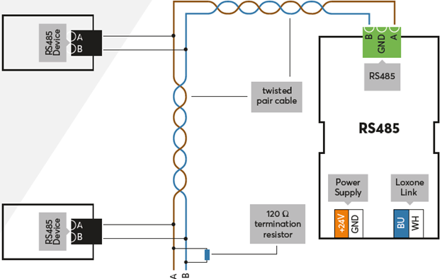 Cách kiểm tra nhanh là đo điện trở giữa hai dây A và B khi chưa cấp nguồn. Nếu hai điện trở 120 Ohm được lắp đúng ở hai đầu, giá trị đo thường xấp xỉ 60 Ohm.