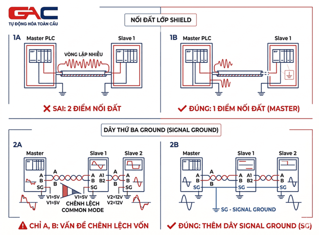 Khi nối đất shield sai cách, hệ thống có thể gặp các vấn đề như: