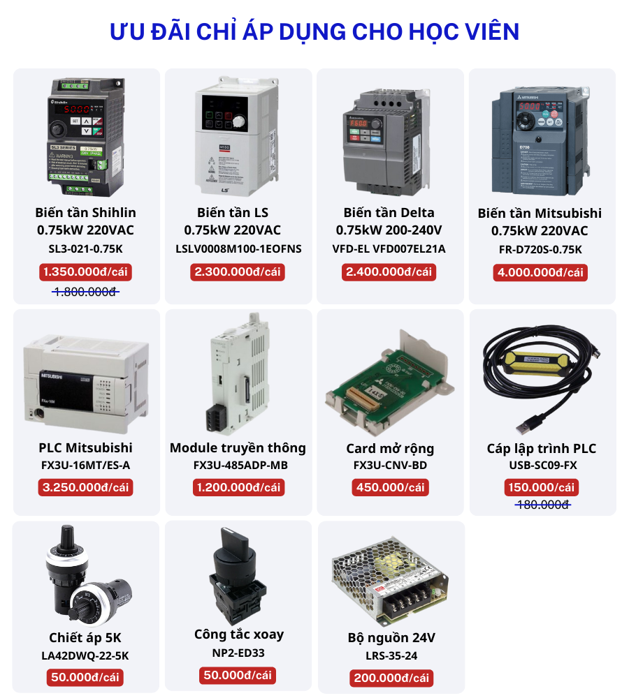 | Buổi 4 | 1. Giới thiệu tổng quan về biến tần 2. Đào tạo biến tần Shihlin: