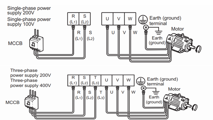 - Biến tần bắt buộc phải được nối đất (Earth) đúng quy định để tránh nguy cơ điện giật.