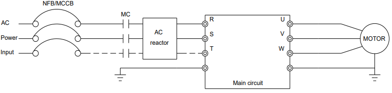 Phải nối đất cho biến tần tại chân tiếp địa (ký hiệu nối đất) để đảm bảo an toàn và giảm nhiễu điện từ.