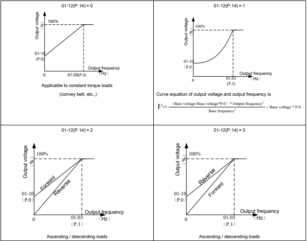 • Loại tải – V/f Pattern (01-12 / P.14):