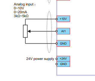 * Đấu nối cảm biến với như tín hiệu analog input trên biến tần