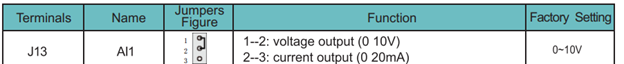 NẾU TÍN HIỆU PID PHẢN HỒI VỀ DẠNG 0-20mA THÌ CHUYỂN VỊ TRÍ JUM TRÊN J13 VỀ VỊ TRÍ 2-3, NẾU TÍN HIỆU DẠNG 0-10V THÌ GIỮ NGUYÊN VỊ TRÍ 1-2