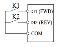 Miêu tả: DI1 nối với COM thì chạy thuận, DI2 nối với COM thì chạy ngược