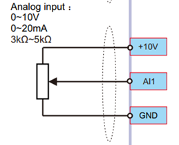 Sử dụng PLC hoặc mạch xuất tín hiệu Analog 0-10V thì đấu nối vào chân AI1, GND