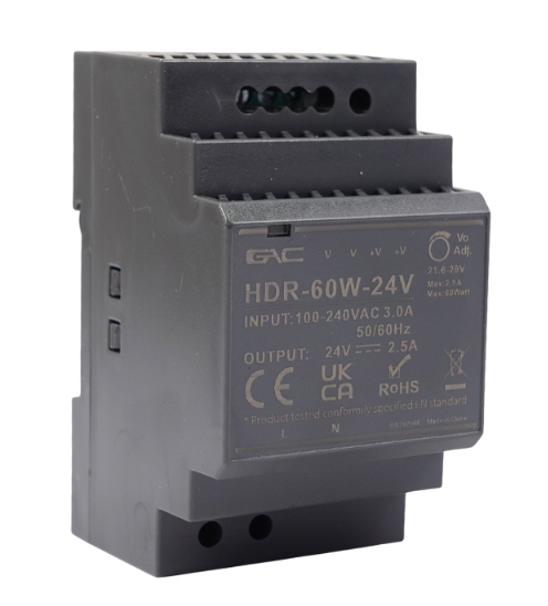 HDR là dòng nguồn mang hơi hướng hiện đại, với vỏ nhựa chống cháy, thiết kế nhỏ gọn, chuyên dùng cho tủ điện có không gian hạn chế. Đây là lựa chọn phổ biến trong các hệ thống điều khiển dân dụng và tự động hóa vừa – nhỏ.