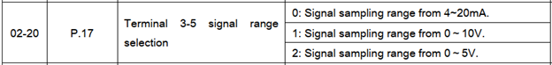 – Khi sử dụng tín hiệu điện áp 0-5V ta cài thông số 02-20