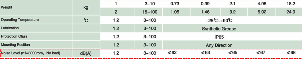 Trong hộp số giảm tốc hành tinh, Noise Level thường không được công bố dưới dạng một giá trị tuyệt đối cố định, mà được đánh giá thông qua so sánh tương đối giữa các dòng sản phẩm hoặc cảm nhận thực tế trong cùng điều kiện tải và tốc độ. Mức ồn thấp cho thấy quá trình ăn khớp bánh răng diễn ra êm ái, lực được phân bố đều và hệ thống ít rung động dư thừa. Ngược lại, độ ồn cao thường là dấu hiệu của sai số gia công, lắp đặt không chuẩn hoặc điều kiện bôi trơn kém.