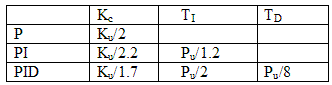 Dựa trên giá trị Ku và Pu vừa tìm được, phương pháp Ziegler Nichols 2 đưa ra công thức tính để kết thúc việc dò tham số PID cơ bản như sau: