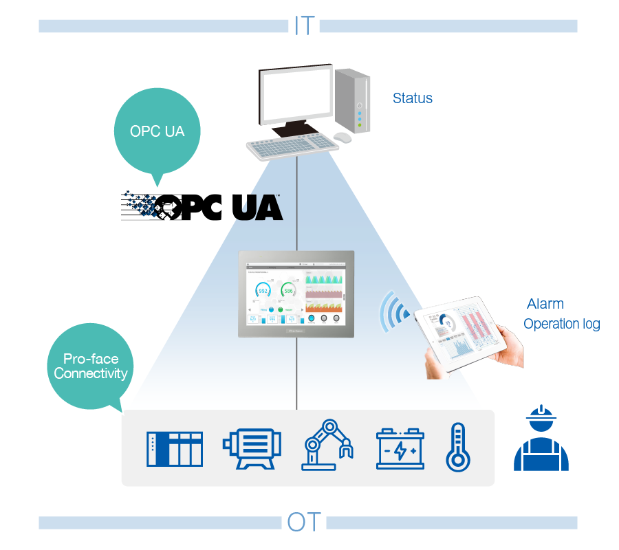 Nền tảng này không bị giới hạn bởi các chuẩn độc quyền của từng nhà sản xuất phần cứng. Màn hình giao diện người máy hiện đại không chỉ đơn thuần là nơi hiển thị thông số. Thiết bị đóng vai trò như một điểm trung chuyển thông minh, thu thập dữ liệu trực tiếp từ các cấp hệ thống tự động hóa bên dưới.