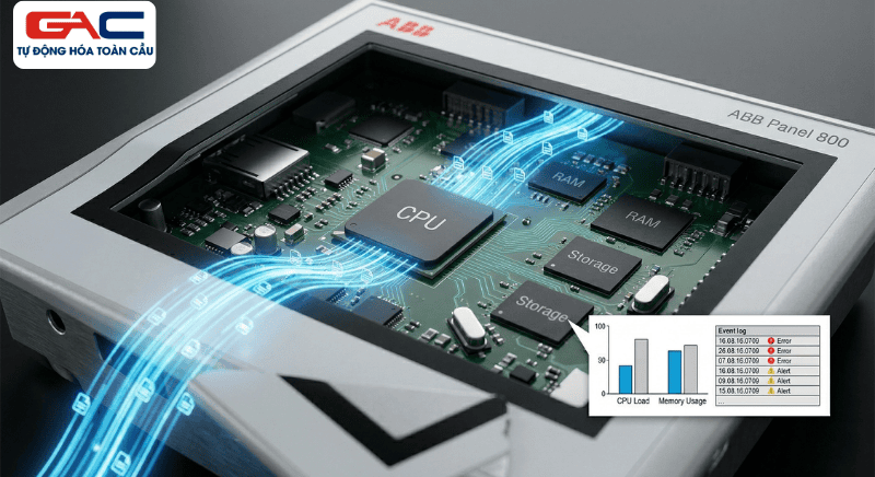 Bên trong HMI là bộ xử lý trung tâm và bộ nhớ lưu trữ chương trình giao diện. Phần này quyết định tốc độ phản hồi, khả năng tải trang, xử lý animation, hiển thị cảnh báo và lưu trữ dữ liệu nội bộ. Khi ứng dụng có nhiều tag truyền thông, nhiều màn hình hoặc cần ghi log sự kiện, bộ xử lý ổn định sẽ giúp thiết bị vận hành mượt hơn.