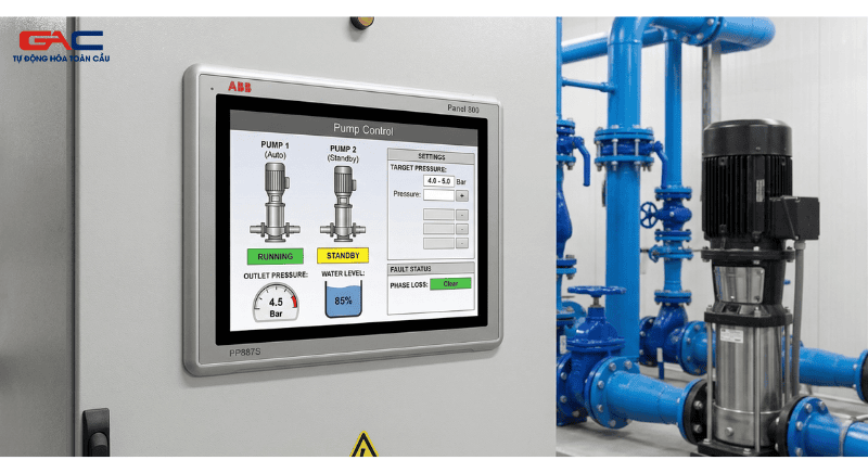 Trong môi trường sản xuất, một giao diện vận hành ABB tốt sẽ giúp giảm phụ thuộc vào nút bấm cơ khí truyền thống, đồng thời tăng khả năng giám sát tập trung. Người vận hành có thể xem trạng thái bơm chạy hay dừng, nhiệt độ đang tăng hay giảm, áp suất có vượt ngưỡng hay không, hoặc kiểm tra nguyên nhân dừng máy ngay trên màn hình. Đây là giá trị thực tế khiến HMI trở thành thành phần gần như bắt buộc trong nhiều hệ thống tự động hóa hiện nay.