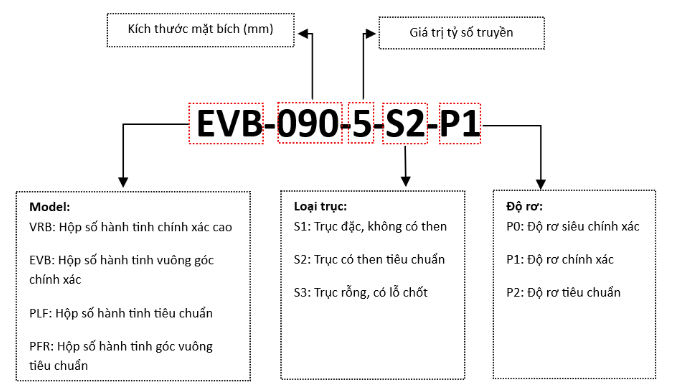 Thông số kỹ thuật hộp giảm tốc EVB-090-5-S2-P1:
