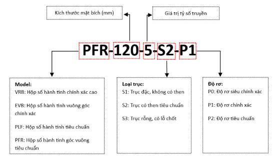 Thông số kỹ thuật hộp giảm tốc PFR-120-5-S2-P1