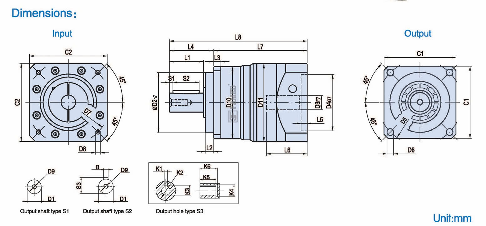 Ghi chú 3: Kích thước đầu vào có thể thay đổi tùy theo động cơ servo hoặc động cơ bước của từng thương hiệu.