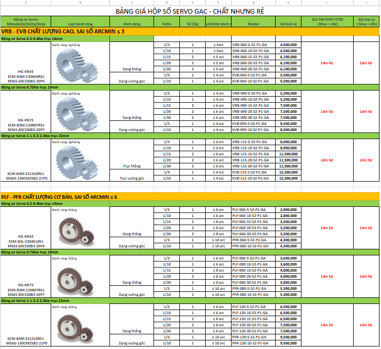 BẢNG GIÁ HỘP SỐ SERVO GAC – CHẤT NHƯNG RẺ