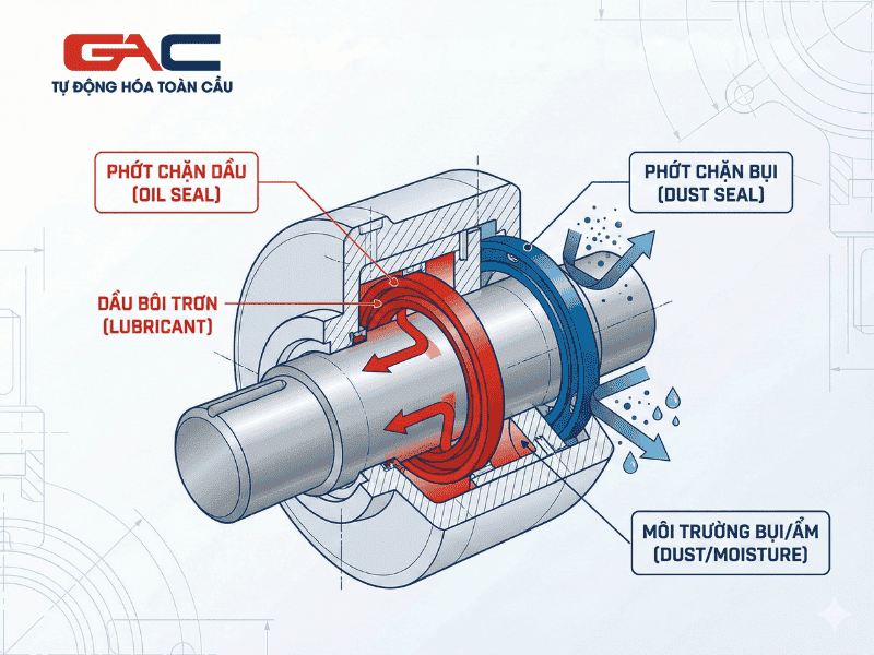 Đây là bộ phận quan trọng nhất ngăn cách môi trường bên trong và bên ngoài. Các dòng hộp số cao cấp thường sử dụng phớt chặn kép làm từ vật liệu Viton hoặc NBR cao cấp. Vật liệu Viton có khả năng chịu nhiệt độ cao và kháng hóa chất cực tốt, giúp phớt không bị biến dạng hay giòn gãy sau thời gian dài sử dụng.
