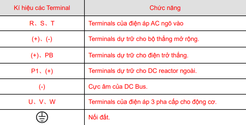 Các Terminals mạch động lực (380VAC):