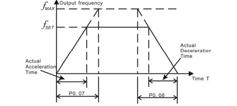 - P00.11: Thời gian tăng tốc. Đây là thời gian để biến tần tăng tốc từ 0 Hz lên tần số MAX (P00.03). Đơn vị tính bằng giây.