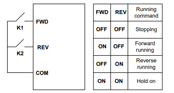 - Kích hoạt S2 (nối với COM): Biến tần chạy ngược.