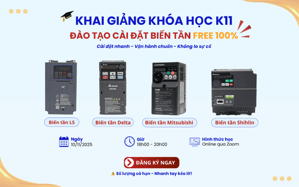 Trong thực tế sản xuất, cài đặt đúng tham số biến tần, chọn chế độ điều khiển phù hợp và xử lý sự cố kịp thời là yếu tố then chốt giúp hệ thống hoạt động bền bỉ và an toàn. Nếu bạn muốn trang bị kiến thức bài bản về cài đặt và vận hành biến tần của nhiều hãng phổ biến trên thị trường, bạn có thể tham gia khóa học miễn phí do Công ty Cổ phần Tự Động Hóa Toàn Cầu tổ chức.